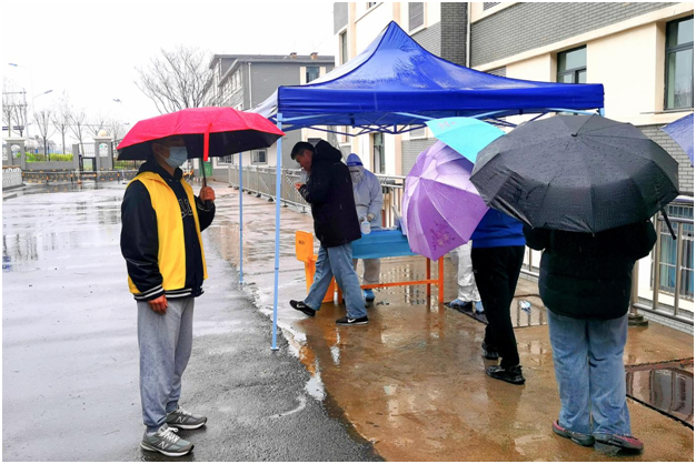 3月25日,全员核酸检测紧张有序进行,阴雨天气中,必赢的学生党员和志愿者们热情高涨,全身心投入到服务工作中。
