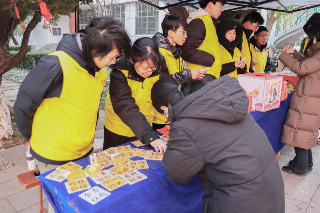 活动以“红绳盲盒”与幸运小兽立牌为载体,将祝福转化为可触摸的温暖。同学们在许愿牌上写下“此程必上岸”等心愿与祝福,抽取装有定制文创、文具或零食的盲盒礼包;现场提供的限定明信片及棒棒糖,也让备考的疲惫在甜意中悄然消散。不少考研学子驻足拍照,将这份来自学院的牵挂与鼓励,定格为奋斗时光里的温暖印记。